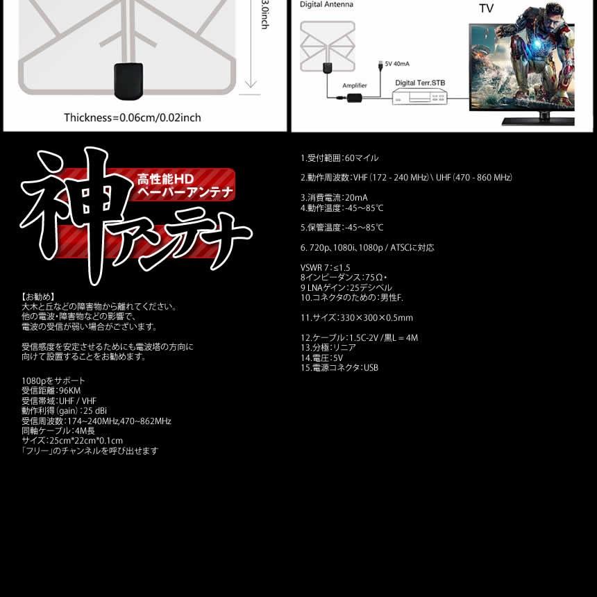 神アンテナ 室内 hd テレビ 地デジ ペーパーアンテナ 卓上 tv vhf対応 96km受信範囲 簡単設置 kamian mg0124 41a 絆ネットワーク 通販 yahoo ショッピング
